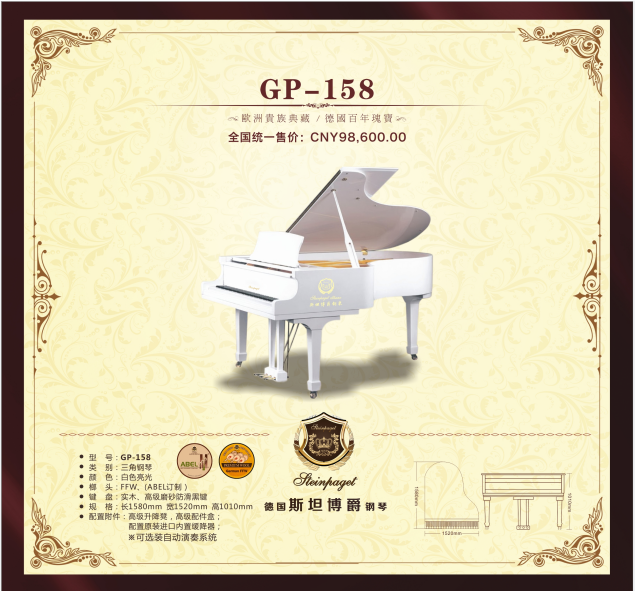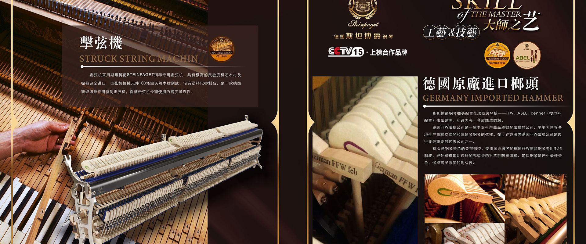 斯坦博爵是一家專注于STEINPAGET立式鋼琴與三角鋼琴的研發(fā)、生產(chǎn)與銷售的公司。我們巧妙融合先進(jìn)的德國(guó)制琴工藝與獨(dú)特鋼琴設(shè)計(jì),致力于打造卓越品質(zhì)。我們以三大核心價(jià)值為基石:經(jīng)營(yíng)理念追求“高效 · 品牌 · 服務(wù)”,產(chǎn)品理念恪守“傳承 · 創(chuàng)新 · 品質(zhì)”,服務(wù)宗旨奉行“客戶需求即工作,客戶要求即追求。為鑄就非凡品質(zhì),我們?nèi)轿煌度耄阂M(jìn)德國(guó)、美國(guó)、日本尖端設(shè)備與優(yōu)質(zhì)制琴材料;特邀德國(guó)頂級(jí)設(shè)計(jì)師及美國(guó)專家顧問傾情指導(dǎo),傳承歐洲經(jīng)典工藝與純正德國(guó)精髓;斥資打造恒溫恒濕生產(chǎn)車間及成品鋼琴靜置倉,確保全球任何氣候下STEINPAGET鋼琴音質(zhì)純美、演奏性能始終如一;并在中國(guó)構(gòu)建完善售后服務(wù)體系,提供國(guó)際水準(zhǔn)的真誠(chéng)服務(wù)。